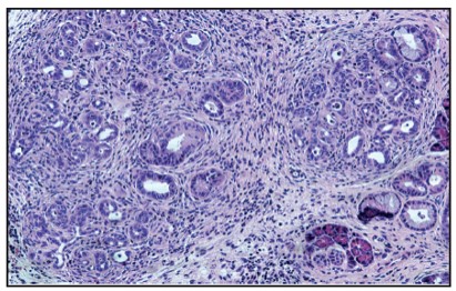 Description: Pancreas sections from control and P. gingivalis-infected mice. Mouse infected with P. gingivalis – pancreas shown full-blown pancreatic cancer.