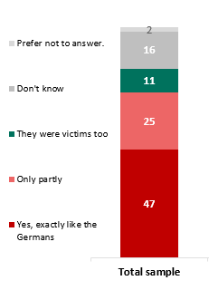 Are the Polish people responsible for their Jewish neighbors being destroyed in the Holocaust? (%, Israeli respondants)