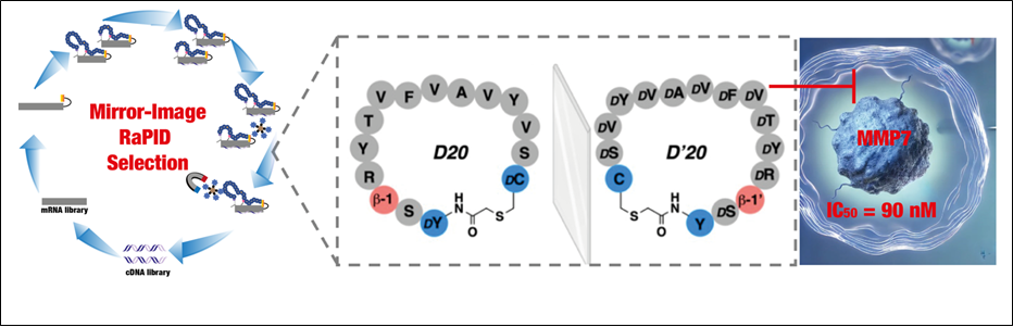 The research paper titled “Mirror-Image Random Nonstandard Peptide Integrated Discovery (MI-RaPID) Technology Yields Highly Stable and Selective Macrocyclic Peptide Inhibitors for Matrix Metallopeptidase 7” is now available at Angewandte Chemie and can be accessed at https://doi.org/10.1002/anie.202414256.