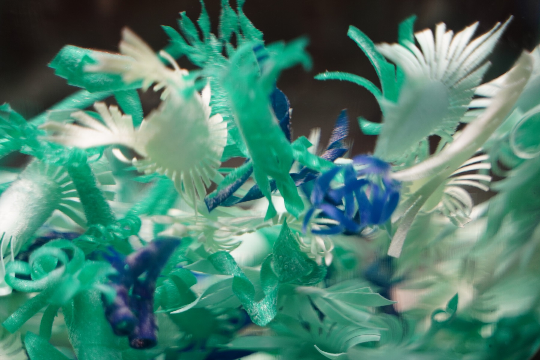 Flat-printed PLA sheets morphing into 3D shapes when entering hot water, an outcome of its internally printed structure. Eran Sharon, Omri Cohen (photo: Lihi Berger)
