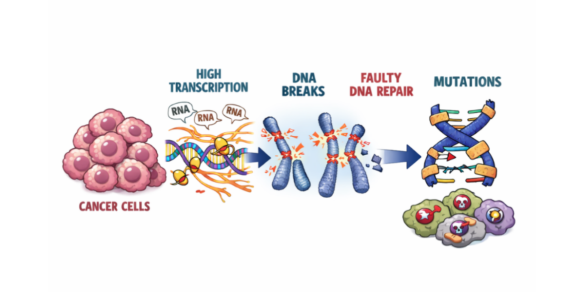 New study shows that cancer damages its own DNA by pushing key genes to work too hard. Researchers found that the most powerful genetic “on switches” in cancer cells, called super-enhancers, drive unusually intense gene activity. That high gear creates stress on the DNA and can cause dangerous breaks. Cancer cells can often repair this damage, but the process is frequently error-prone, the repeated cycle of breaking and repairing can make these regions more prone to accumulating mutations over time. In short, the same mechanisms that help cancer grow quickly may also make its DNA more fragile, helping explain how tumors continue to evolve and, in some cases, become more aggressive over time.