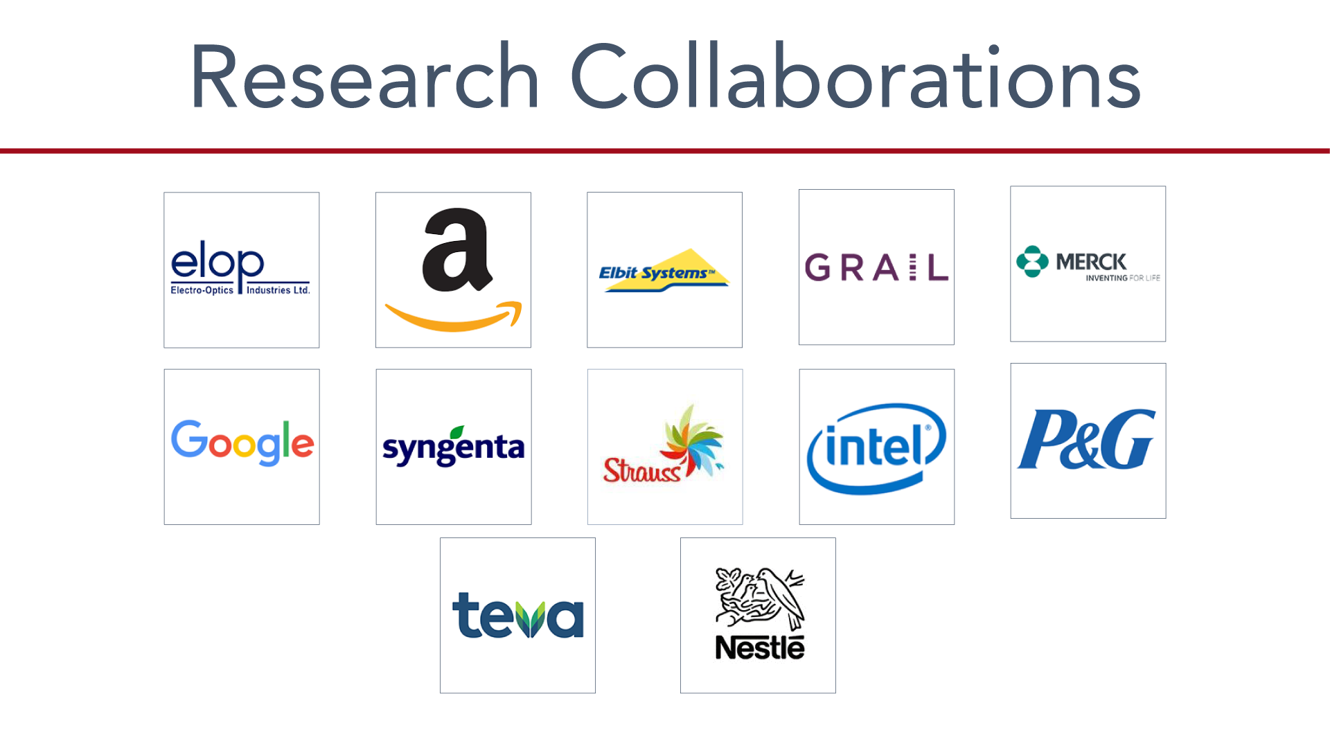 • Research collaborations with major names including Google, Amazon, Teva, Merck, Intel, Nestle